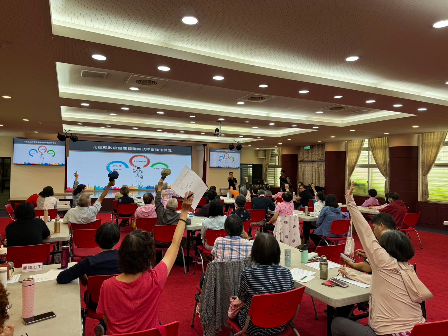 為提升花蓮縣政府廉政志工專業知能及凝聚向心力,促進民眾參與及投入廉政志願服務工作,發揚公民精神,帶動廉潔風氣,共同實踐社會參與。縣府政風處於5月23日大禮堂舉辦「113年廉政志工專業訓練暨聯繫交流會議」,並邀請文化局及衛生局志工一同參加,透過本次訓練及經驗交流,建立民間與政府的反貪腐夥伴關係,促進透明與貪腐零容忍的共識,增進廉政志工專業與凝聚反貪共識,並帶動廉潔風氣。