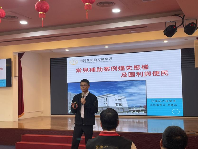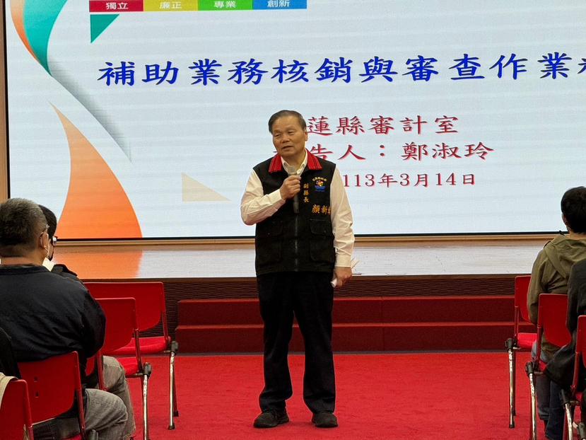 花蓮縣副縣長顏新章致詞時表示,花蓮縣補助項目相當多元且審核作業繁雜,為使承辦補助業務同仁避免作業疏漏,進而衍生廉政風險發生,應定期辦理法紀教育,建構廉政意識防火牆。