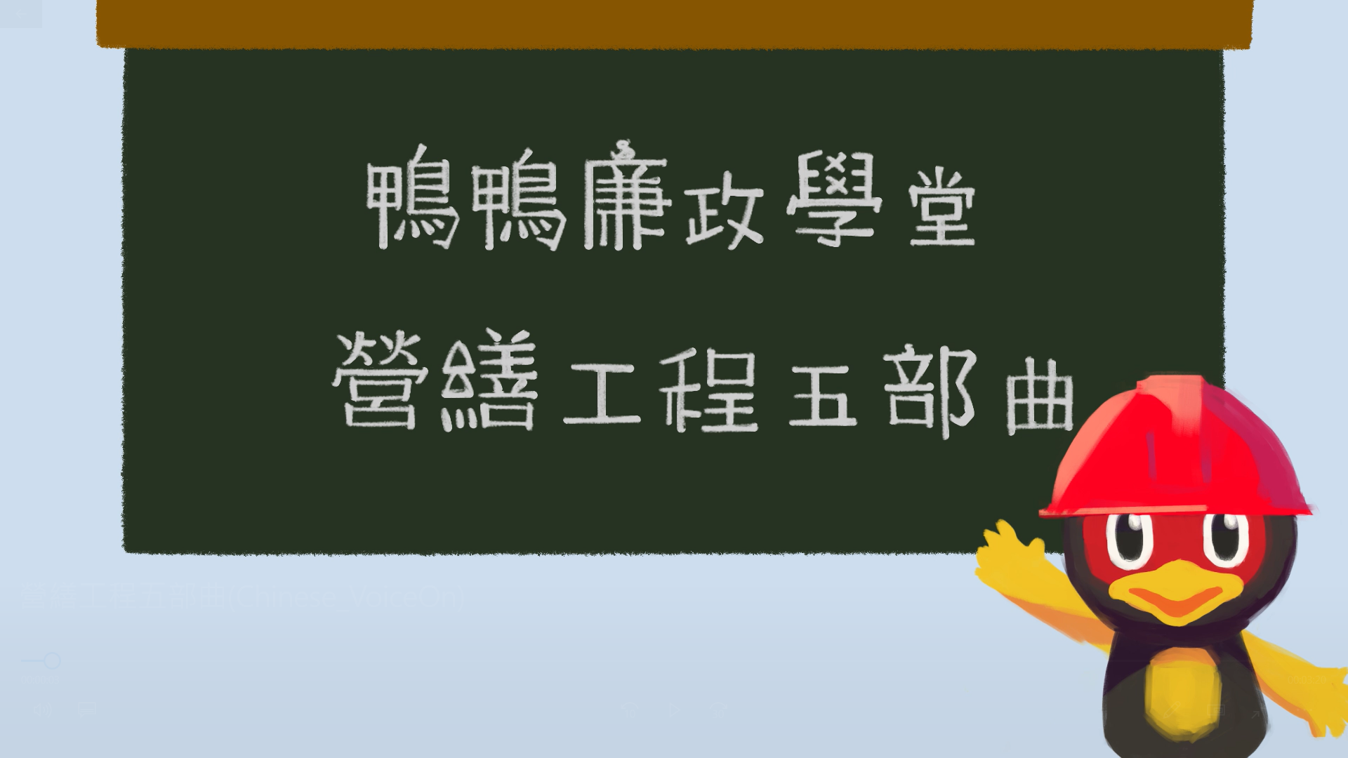 自去(110)年11月起,花蓮縣政府政風處即就運動休憩場館工程常發現的共通性缺失,陸續研編《友善校園.誠信向廉》防貪指引手冊、《校園營繕工程採購實務手札》等教材,今年5月初並製作《鴨鴨廉政學堂-營繕工程五部曲》動畫與繪本,由花蓮人氣吉祥物「福氣鴨」及「幸福鴨」分別就「兼任職務」、「工程驗收」、「偷工減料」、「安全措施」、「跨區兼任」等五則稽核發現之缺失案例進行解說,透過活潑生動的動畫傳達工程品質及誠信經營之重要性,提升縣府營繕工程採購品質與效能。