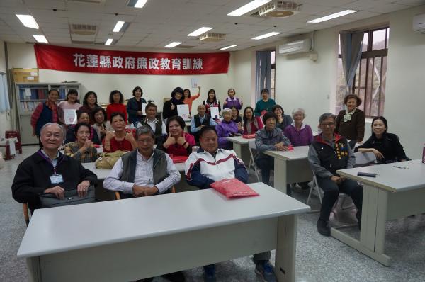 花蓮縣政府成立廉政志工隊,希望透過志工服務的方式,建立民間與政府的反貪腐夥伴關係,並在參與過程累積強化其反貪經驗、能量及防貪意識,藉以打造「乾淨政府、誠信社會」並落實「愛護、防護、保護」之工作目標。據此,縣府政風處於2月26日假本縣衛生局教育訓練教室舉辦「108年廉政志工專業訓練」,本次訓練特邀請國立東華大學幼兒教育學系講師林偉信、法務部廉政署綜合規劃組專門委員劉耀中及防貪組科長黃俊祥擔任講師,透過雙向的互動以有效強化志工之本職學能。政風處處長廖錦旌表示,「廉能是政府的核心價值,貪腐足以摧毀政府的形象」,廉政政策的成功乃建構廉能政府的基石,而這一切條件必須植基於公民意識、公民參與及社會價值。