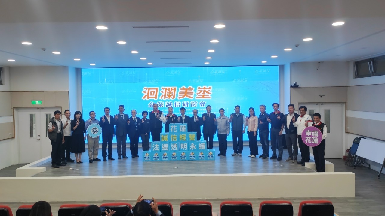 為強化私部門反貪腐工作,推廣企業建立誠信、透明及遵法之永續發展經營理念,花蓮縣政府政風處跨域結合花蓮縣環境保護局及東華大學於今(20)日舉辦「洄瀾美埊」企業誠信研討會,縣長徐榛蔚特地到場參與,攜手約150位在地產官學界共襄盛舉,倡導誠信法遵理念