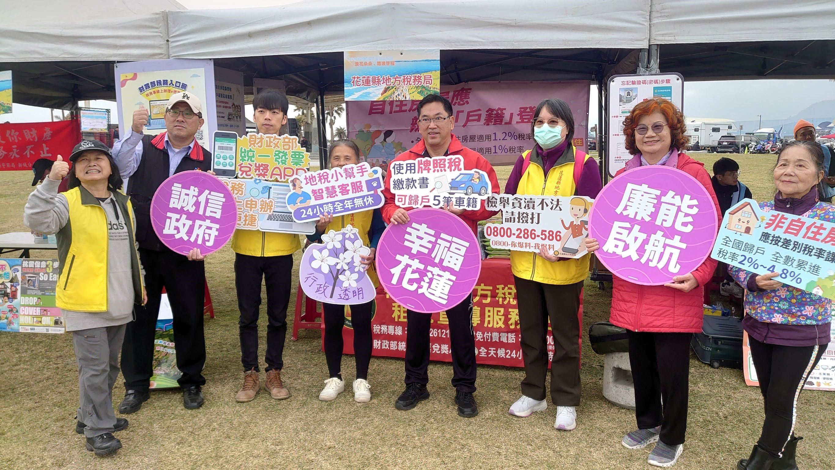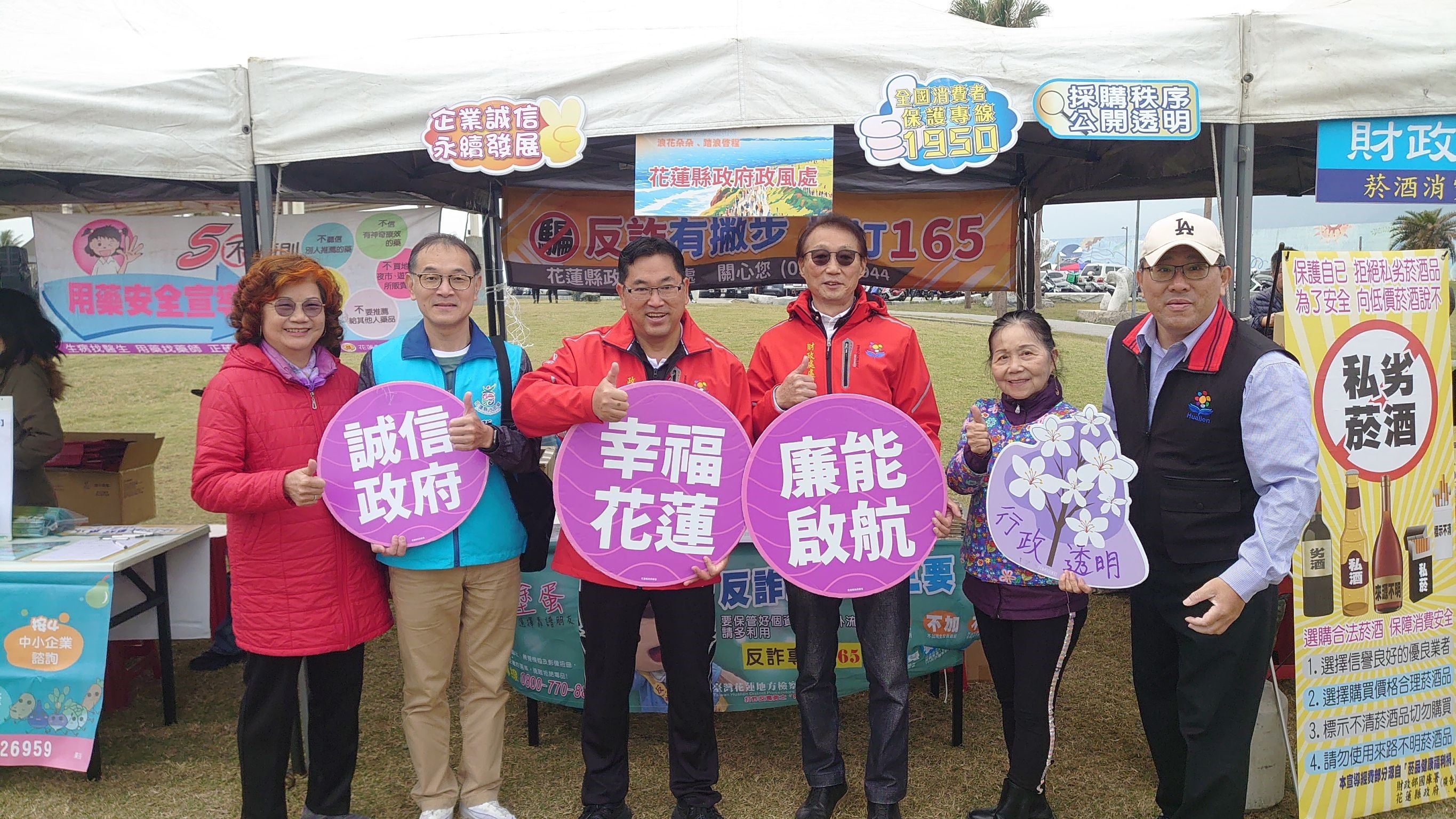 花蓮縣政府為慶祝2025年元旦及推動全民運動風氣,於1月1日上午九點假本縣七星潭風景區辦理「2025花蓮元旦健潭縱走」活動,花蓮鄉親偕老攜幼全程完成健走路線,政風處為宣導反貪腐、反詐騙及消費者保護熱線,與消防局、吉安公所政風室共同辦理廉政宣導,於健走活動現場設置宣導攤位邀請民眾參與有獎徵答,內容包括廉政署檢舉專線0800-286-586(你爆料、我爆料)、反詐騙專線165及消費保護專線1950等重要資訊,期望花蓮鄉親瞭解縣府推動行政透明清廉施政與積極保護民眾財產安全之用心,縣長也鼓勵鄉親民眾參與宣導獲得資訊對自身權益必有助益。