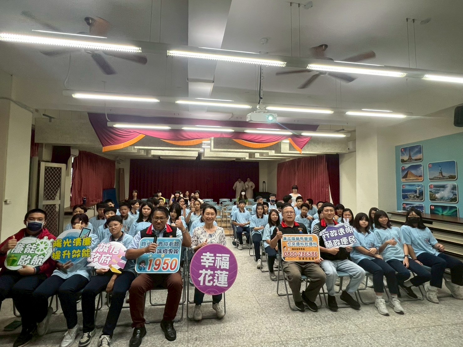 為落實青少年法治教育,並強化學子對「廉政誠信」、「反詐騙」等核心價值的認識,花蓮縣政府近期全面啟動「洄瀾青廉學園」巡迴宣導活動,深入縣內各國中校園進行一系列互動式宣導,目前已陸續前往海星中學、平和國中、豐濱國中及富北國中,獲得師生熱烈回響。