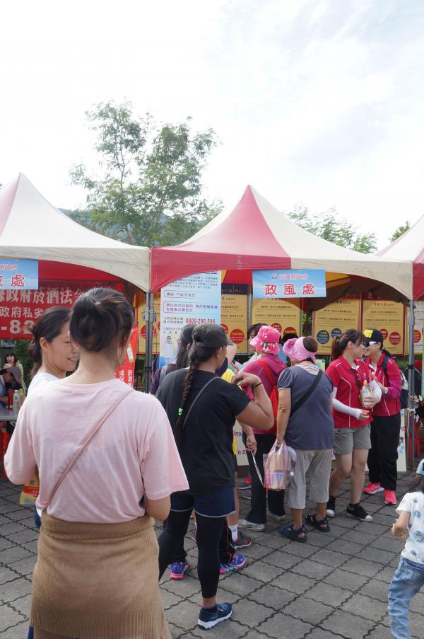 而本次路跑健走活動,縣府為擴大宣導效益,結合數個公務機關,包括衛生福利部中央健康保險署東區業務組、玉里地政事務所、本縣警察局、地方稅務局、花蓮縣工商發展投資策進會、縣府政風處、財政處等到場設攤與鄉親互動、共襄盛舉